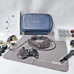 The Vulkan comes in book-fold style box with the earpieces and cable on the top level and the case and accessories hiding underneath. There is a soft case, cleaning cloth, 3 jacks, one 6.35mm adapter, 9 sets of tips, a cleaning tool, an airline adapter, the earpieces and cable. The kit is quite complete with the wide selection of tips and jacks with the only thing missing being a foam tip for better isolation.