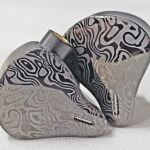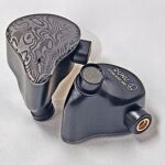 The shell is mid to large size with a solid aluminum inner shell and a Mokume face plate. Mokume-gane is a Japanese technique similar to producing Damascus steel that uses different metals that are folded, compressed, and chiseled to expose different layers when the metal is flattened into a sheet. The process was originally used to make the decorative fittings on Samurai swords and has been used to make high end jewelry, watches, and fittings in more recent times. Tiffany & Co silversmiths are credited with introducing the technique to the west in the late 1800s and used Mokume in a number of designs through the early 1930s when the depression forced them to cut back. The Mokume process creates unique pieces so no two of the shells will look exactly alike but all have a two tone gloss and matte gray swirl pattern. I appreciate the subtlety in the design. There is a single vent in the face plate directly behind the nozzle and no venting on the underside. Nozzles are on a raised pedestal with a slight forward rake for fairly deep insertion. Connections are by MMCX with the body having a raised port on the leading side of the body. I found the Vulkan comfortable and with the tip-up wear style and ear-hooks the units stay put well during exercise.