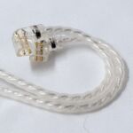 The cable is silver plated copper strands in clear casing with a double twist pattern from jack to splitter and a fairly tight twist of two strands above the splitter leading to each ear-hook. The jack is of my preferred 90º style with a short strain relief and a clear housing that matches that of the splitter. There is no chin-slider provided. Ear-hooks do not have memory wire but are tight enough that they fit snugly, and the hooded 0.78mm bi-pin connectors mate well to the raised connector on the earpiece surface. The L/R markings are embossed on the clear housings which can make them a bit hard to see so a drop of red paint on one side to help indexing would be appreciated.