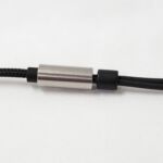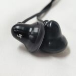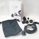 The earpieces are made of a magnesium/aluminum alloy in a stepped cone shape with a rounded back and a short tube where the cable exits. The cable exit has some airspace around the cable so doubles as the driver’s rear vent. The grill is stainless steel with concentric circles of pin-hole ports to allow sound through but block dust, and wax. These are not waterproof or sweatproof due to the open nature of the face and rear vent so some care needs to be exercised around water. Despite the metal build the earpieces are fairly light and if wearing during strenuous exercise the provided earhooks come in handy. When not exercising, the earpieces can be worn tip-down with great comfort although some microphonics are transferred to the ear when wearing them in this style.