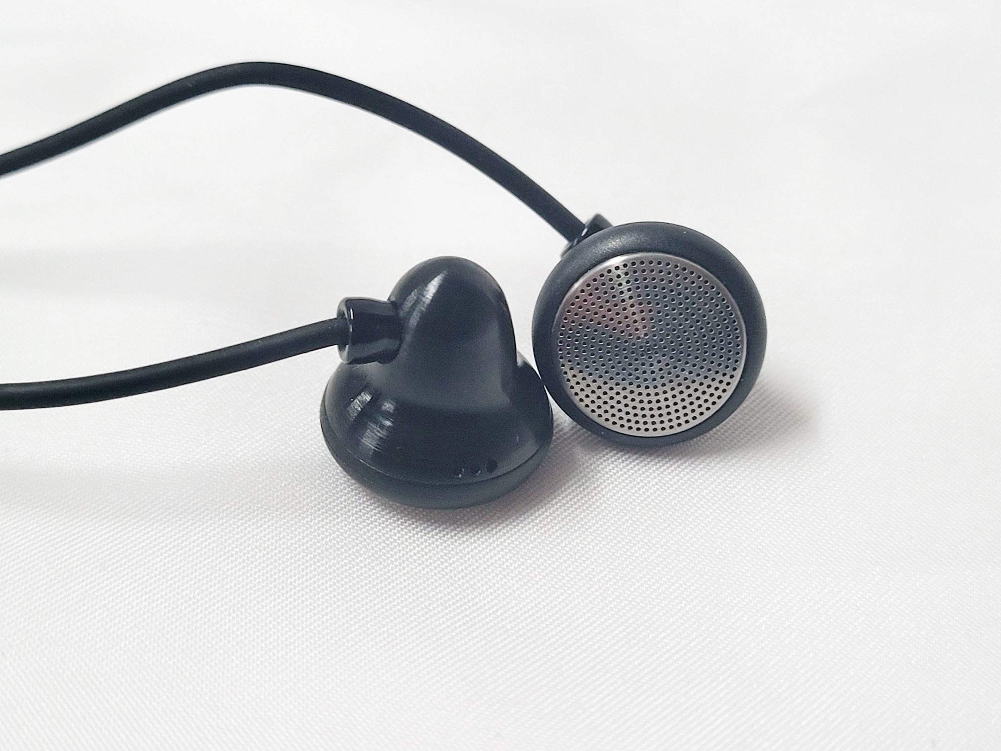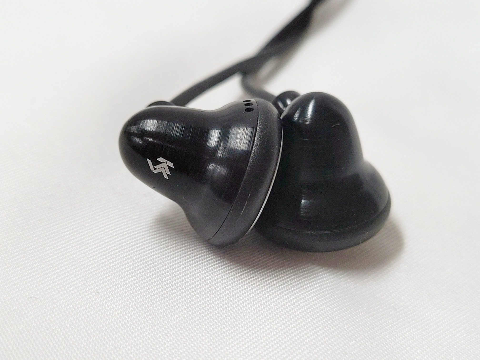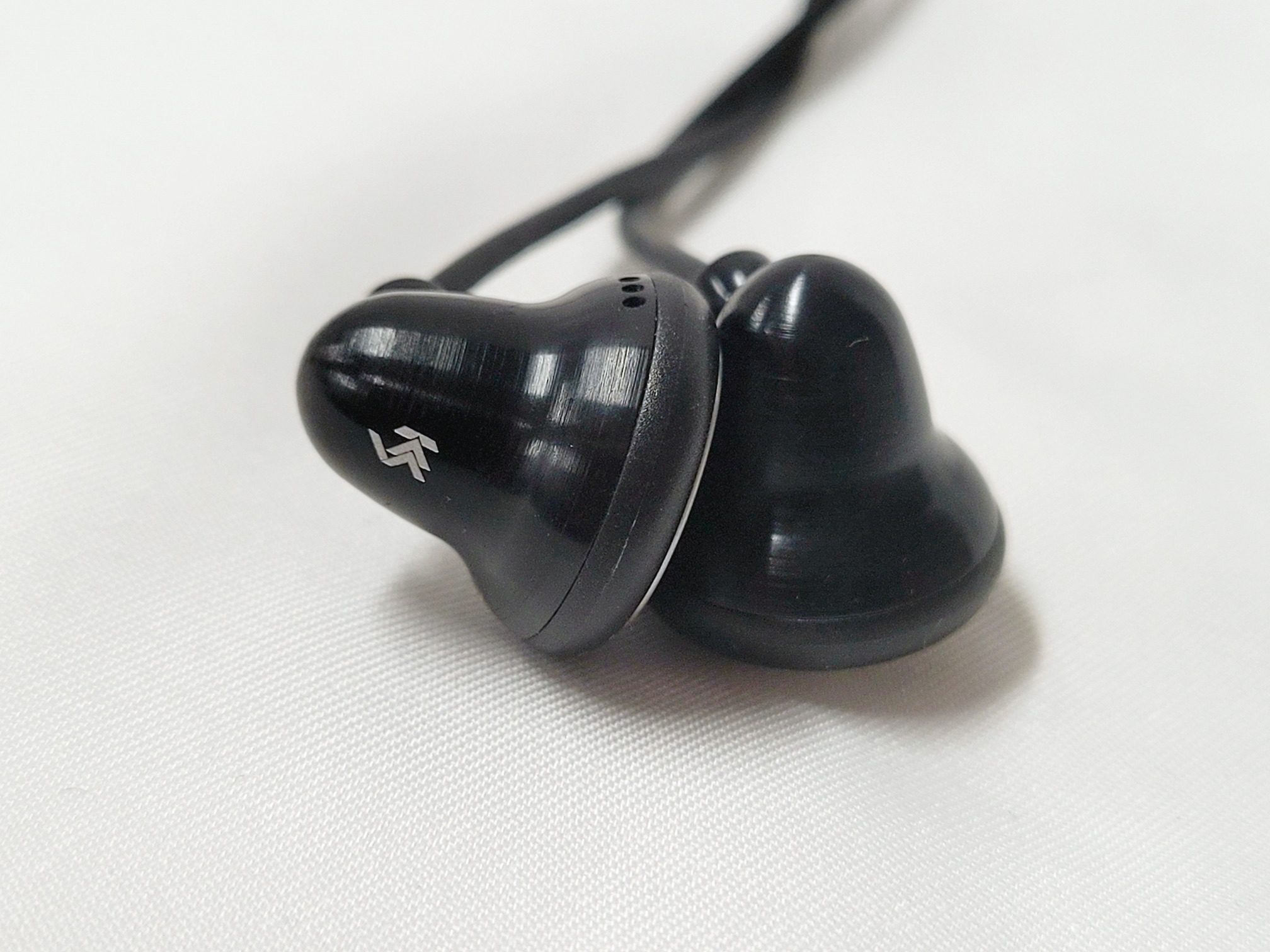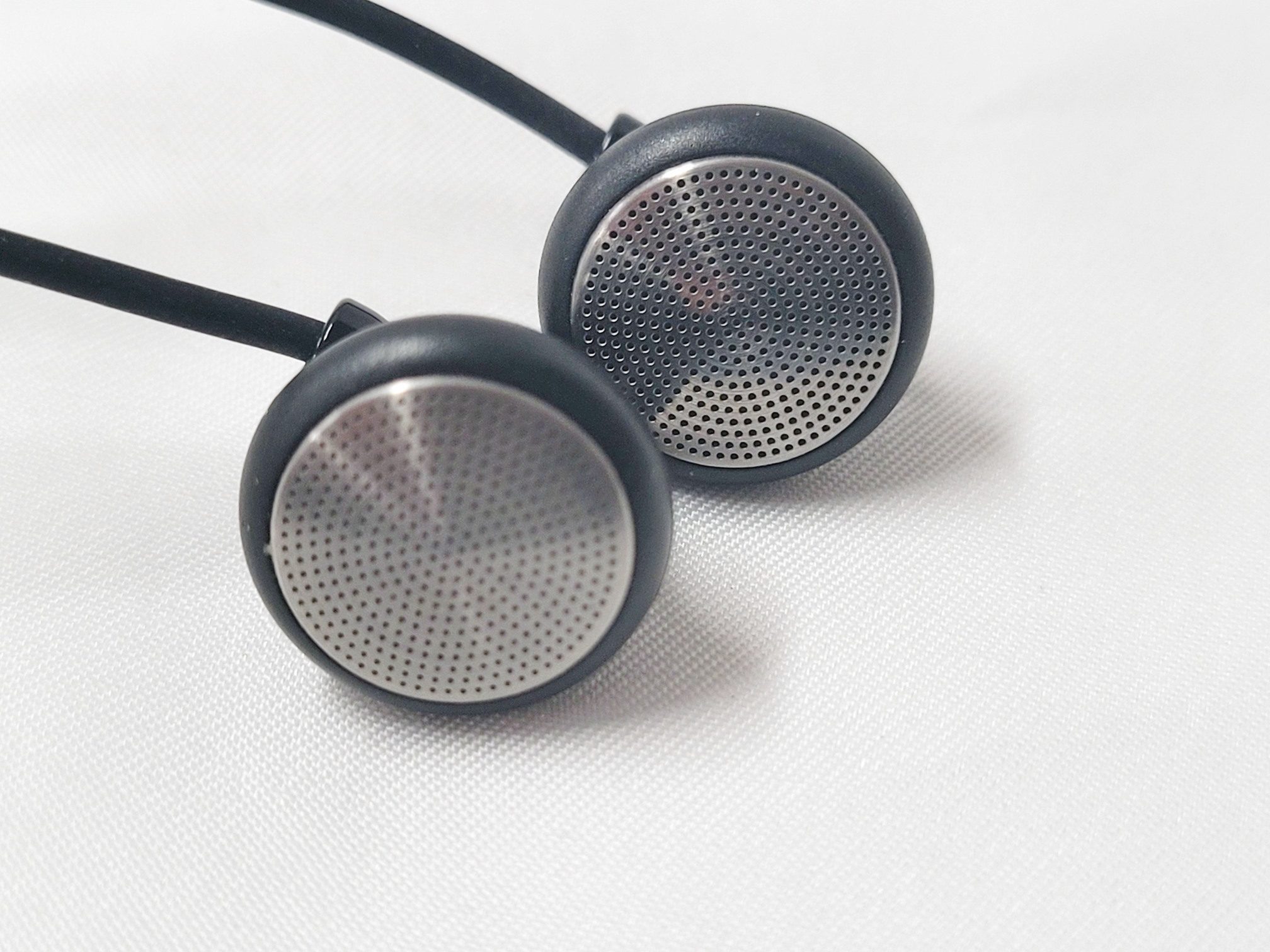 The earpieces are made of a magnesium/aluminum alloy in a stepped cone shape with a rounded back and a short tube where the cable exits. The cable exit has some airspace around the cable so doubles as the driver’s rear vent. The grill is stainless steel with concentric circles of pin-hole ports to allow sound through but block dust, and wax. These are not waterproof or sweatproof due to the open nature of the face and rear vent so some care needs to be exercised around water. Despite the metal build the earpieces are fairly light and if wearing during strenuous exercise the provided earhooks come in handy. When not exercising, the earpieces can be worn tip-down with great comfort although some microphonics are transferred to the ear when wearing them in this style.