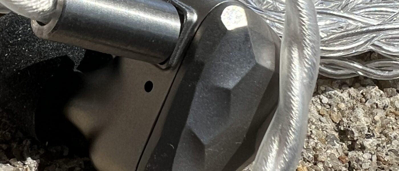 That Titanium shell has a single vent hole on top, which is nice to see. Some that are placed on the inner side can be covered up while wearing, which defeats the purpose to me. The “nub” on the inside is small enough not to bother (unlike many…), but large enough to help do the job of keeping the IEM in place while wearing. And as expected, the shell is acoustically tuned to maximize performance of the drivers involved. While the IEM is on the slightly large size, it fits almost flush using the included foam tips.
