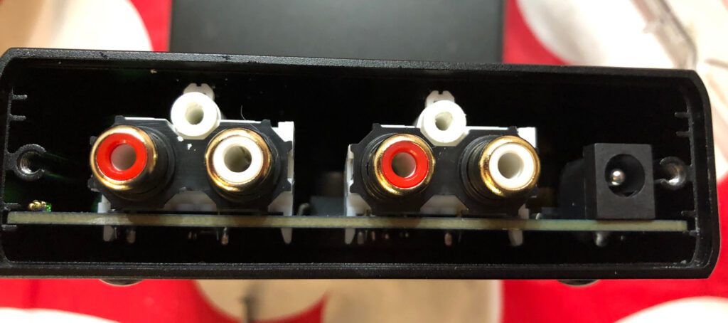 A word of caution here; the screws into the RCA housings are long and screw into plastic so be gentle and know that if you do this very many times it may well strip the threads and require some epoxy in the channels to grip. Also the dust covers on the RCA jacks will hold the rear face in place as well so those need to be removed and then the rear face should fall off with a gentle tap.